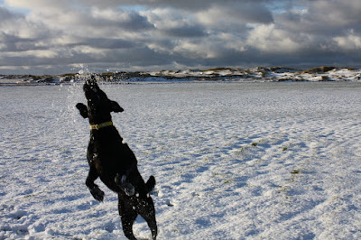 Etter runderinga tok eg Ekko med på fototur. Kjempekjekt syntes han. Han trente meg til og med til å fotografere og kaste snøball samstundes! Så her er han: svart på kvitt.